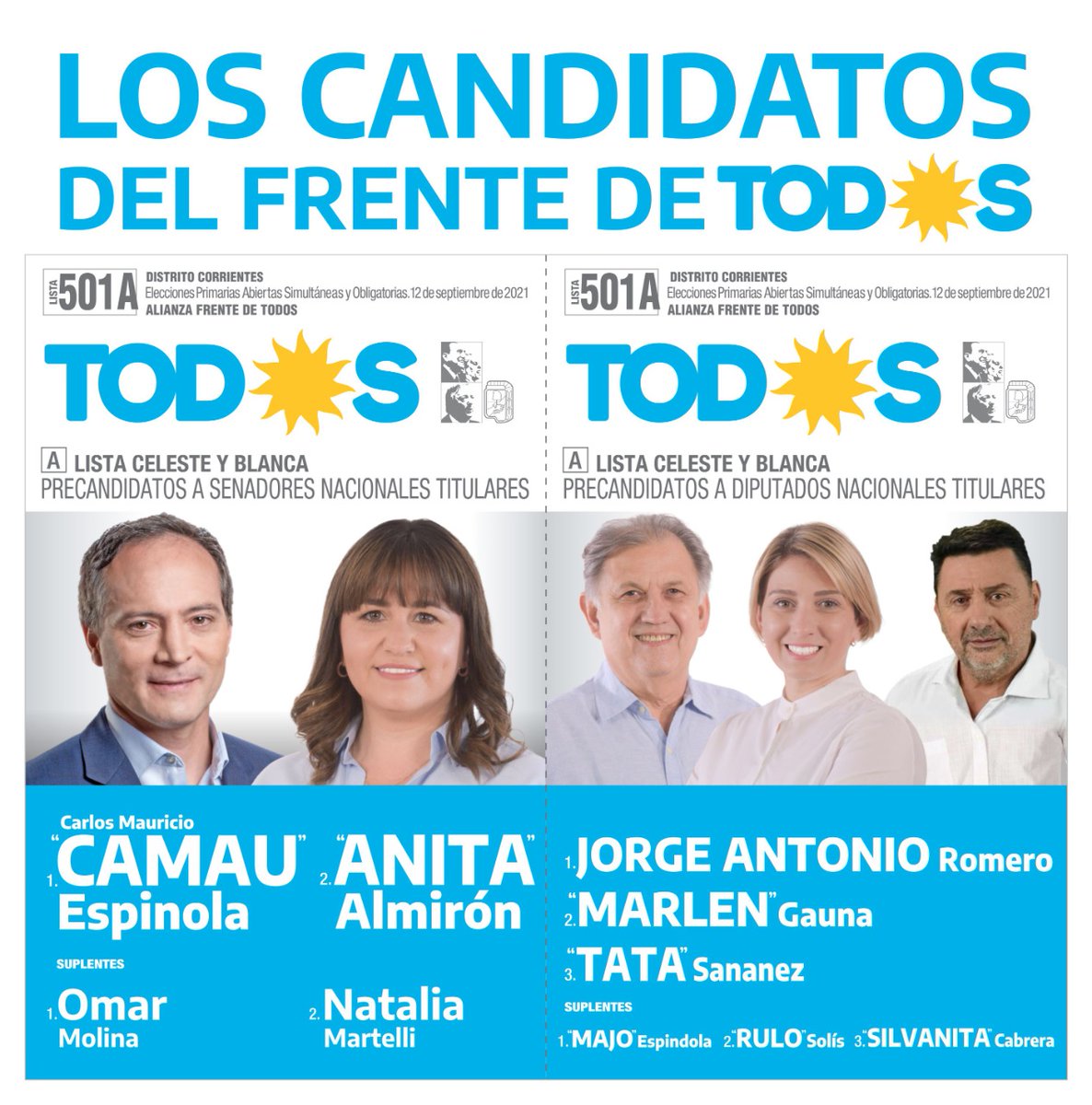 507 frente de todos - lista celeste y blancajpg. CONCEJAL TITULAR 1 BOYANOVSKY Lucas Matías2 PEREYRA Erica Noelia3 PACE Vicente Roberto4 CORTIELLAS CORDOBA Marcela Karina5 ACERBO Aníbal Emilio6 PORRIS CATELLANI Erica7 CONDE Franco Lucas Gustavo8 ABURTO Gisela María9 RODRIGUEZ Nahuel Alejandro10 ROBLES. Les dejamos algunas imágenes de la ceremonia y la lista.